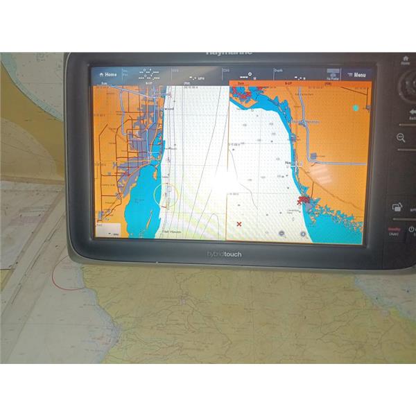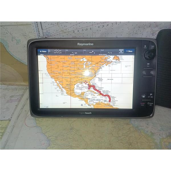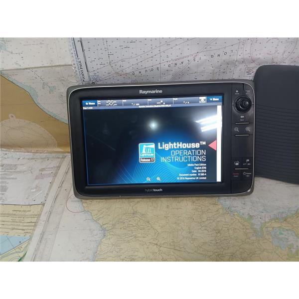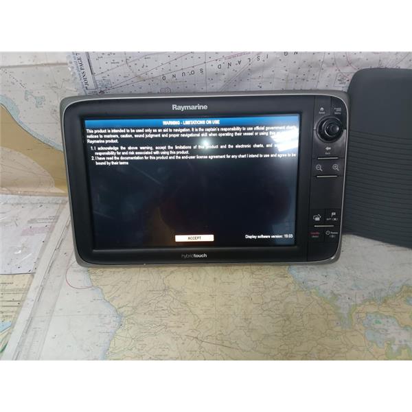 Boaters' Resale Shop of TX 2501 1141.01 RAYMARINE E70024 HYBRID-TOUCH MFD w SUN COVER ONLY * NOTHING ELSE INCLUDED(POWER CABLE FOR TESTING ONLY) * SEE ALL 10 PHOTOS * SOLD IN CONDITION PICTURED * ITEM WAS PREOWNED, USED, SOME PORT COVERS ARE DAMAGED BUT ARE STILL PRESENT AND UNIT IS IN FAIRLY GOOD PHYSICAL CONDITION AND APPEARS TO BE OPERATING PROPERLY, POWERS UP AND CONTROLS WORK BUT HAS NOT BEEN TESTED FURTHER