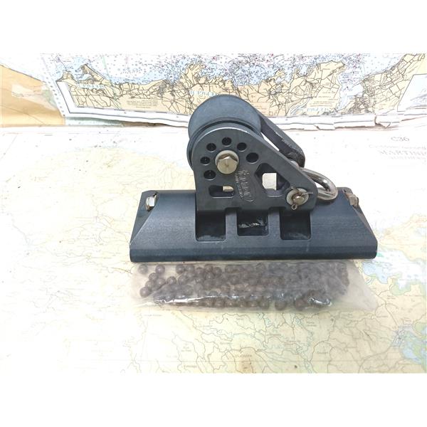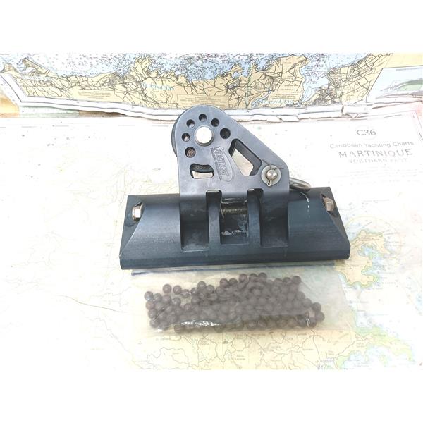 This ball bearing car enables an optimum tensioning of the Mainsail outhaul.