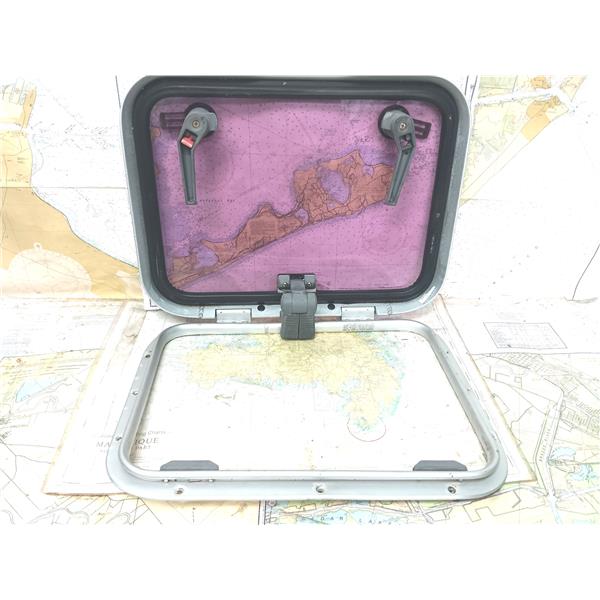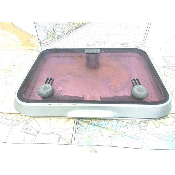 Boaters' Resale Shop of TX 2502 0154.03 LEWMAR 15" x 20.5" OPENING TINTED HATCH * LEWMAR LOW PROFILE HATCH with ROSE TINTED LENS, TWO HANDLES & ONE HINGE * ONE OF THE HANDLES LOCKING MECHANISM IS DAMAGED AND NOT WORKING BUT THE OTHER HANDLES LOCKING MECHANISM IS WORKING PROPERLY * SEE ALL 6 PHOTOS & DETAILS * SOLD IN CONDITION PICTURED * ITEM WAS PREOWNED, USED, SHOWS TYPICAL SIGNS OF INSTALLATION, REMOVAL, WEAR FROM USE AND WEATHER BUT IS IN FAIR NAUTICAL PHYSICAL CONDITION AND ONE HANDLE & THE HINGE APPEAR TO BE OPERATING PROPERLY, BUT HAS NOT BEEN TESTED FURTHER