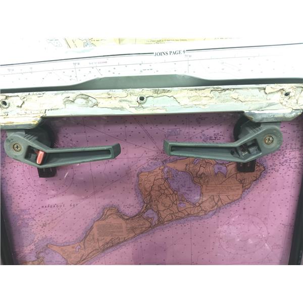 | Condition Description | ONE OF THE HANDLES LOCKING MECHANISM IS DAMAGED AND NOT WORKING BUT THE OTHER HANDLES LOCKING MECHANISM IS WORKING PROPERLY * SEE ALL 6 PHOTOS & DETAILS * SOLD IN CONDITION PICTURED * ITEM WAS PREOWNED, USED, SHOWS TYPICAL SIGNS OF INSTALLATION, REMOVAL, WEAR FROM USE AND WEATHER BUT IS IN FAIR NAUTICAL PHYSICAL CONDITION AND ONE HANDLE & THE HINGE APPEAR TO BE OPERATING PROPERLY, BUT HAS NOT BEEN TESTED FURTHER |