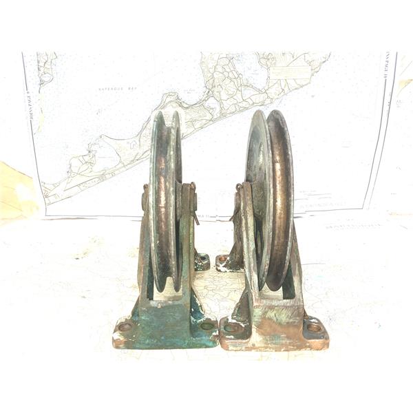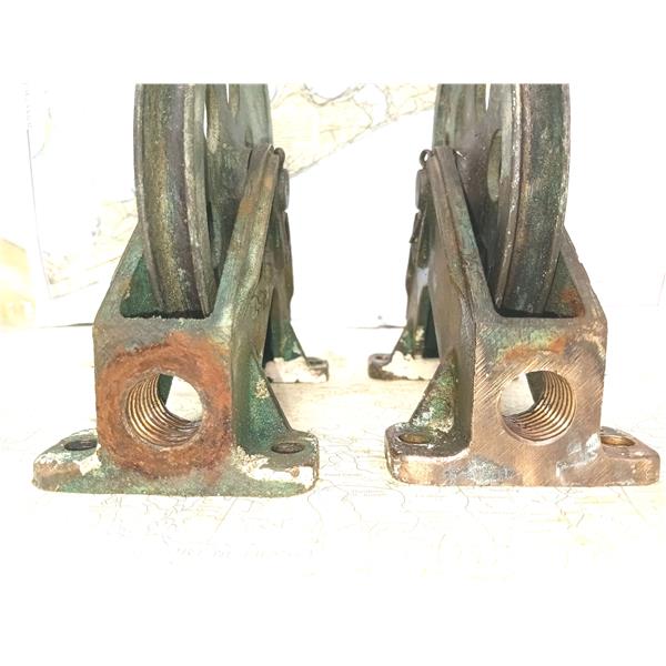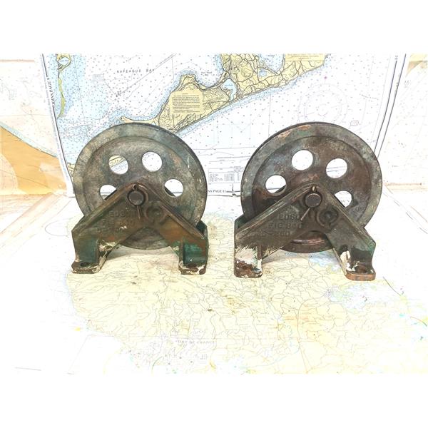 Boaters' Resale Shop of TX 2502 0154.84 EDSON PAIR OF CONDUIT IDLERS w 6" SHEAVE * EDSON MARINE BRONZE IN-OUT CONDUIT IDLER ASSEMBLIES w 6" SHEAVES * SEE ALL 6 PHOTOS & DETAILS * SOLD IN CONDITION PICTURED * ITEM WAS PREOWNED, USED, SHOWS TYPICAL SIGNS OF WEAR FROM USE AND WEATHER BUT IS IN FAIR NAUTICAL PHYSICAL CONDITION AND APPEARS TO BE OPERATING PROPERLY, BOTH SPIN FREELY IN BOTH DIRECTIONS BUT HAS NOT BEEN TESTED FURTHER