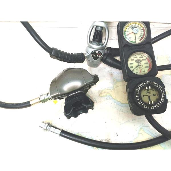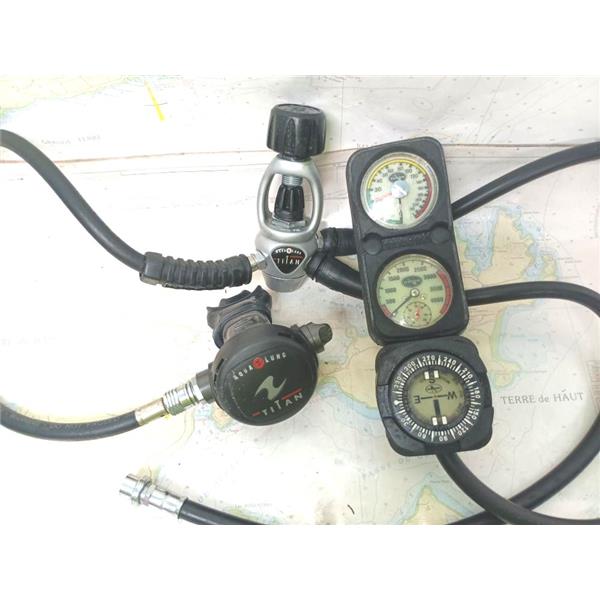 Boaters' Resale Shop of TX 2502 2724.12 AQUA-LUNG TITAN SCUBA REGULATOR & GAUGES(DACOR) * 6045352 * USA 3300 PSI * .232 BAR MAX * SEE ALL 6 PHOTOS & DETAILS * SOLD IN CONDITION PICTURED * ITEM WAS PREOWNED, USED, SHOWS TYPICAL SIGNS OF WEAR FROM USE AND WEATHER BUT IS IN FAIRLY GOOD NAUTICAL PHYSICAL CONDITION AND APPEARS TO BE OPERATING PROPERLY BUT HAS NOT BEEN TESTED FURTHER