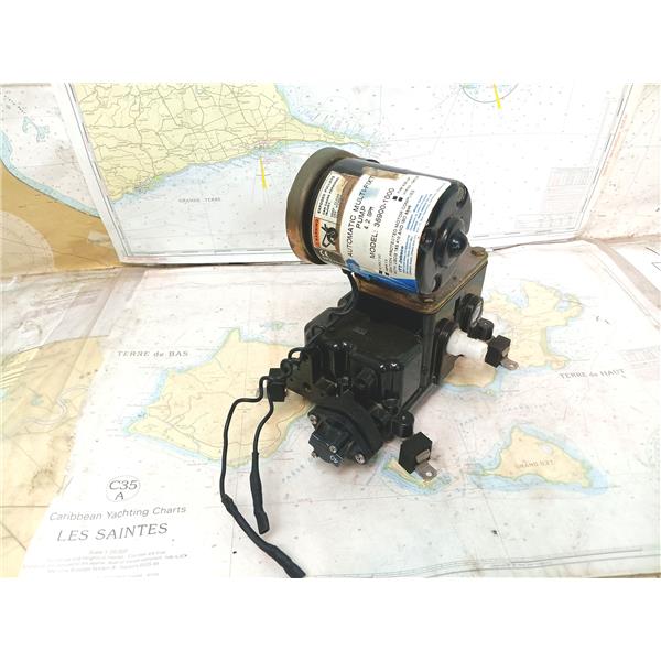 SEE ALL 6 PHOTOS & DETAILS * SOLD IN CONDITION PICTURED * ITEM WAS PREOWNED, USED, PRESSURE SWITCH IS DISCONNECTED AND ONE PLASTIC HOSE PORT IS BROKEN AND SHOWS TYPICAL SIGNS OF WEAR FROM USE AND WEATHER BUT IS IN FAIR NAUTICAL PHYSICAL CONDITION BUT MOTOR POWERS UP, BELT ROTATES PUMP AND SUCTION IS PRESENT BUT HAS NOT BEEN TESTED FURTHER