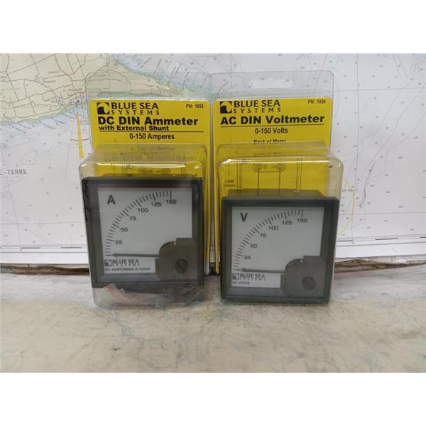 Boaters' Resale Shop of TX 2503 0557.21 BLUE SEA AC/DC DIN METERS 1055 & 1056 SET * INSTRUCTIONS & MOUNTING HARDWARE INCLUDED * Blue Sea Systems 1055 DC DIN AMMETER w EXTERNAL SHUNT & 1056 AC DIN VOLTMETER * SEE ALL 6 PHOTOS * SOLD AS PICTURED * ITEMS WERE PREOWNED, IN ORIGINAL PACKAGES, ARE IN GREAT PHYSICAL CONDITION AND APPEAR TO HAVE NEVER BEEN INSTALLED OR DEPLOYED AND HAVE NOT BEEN TESTED