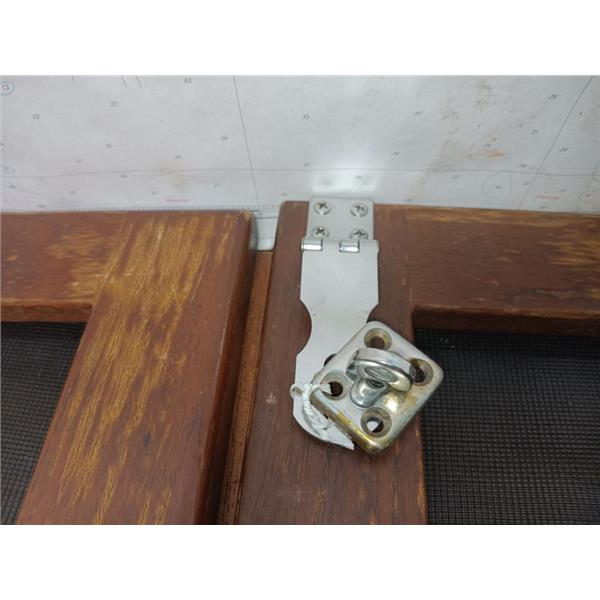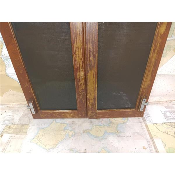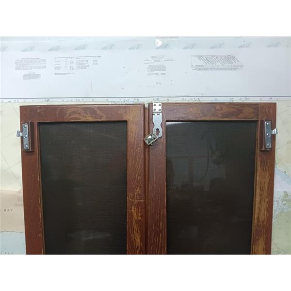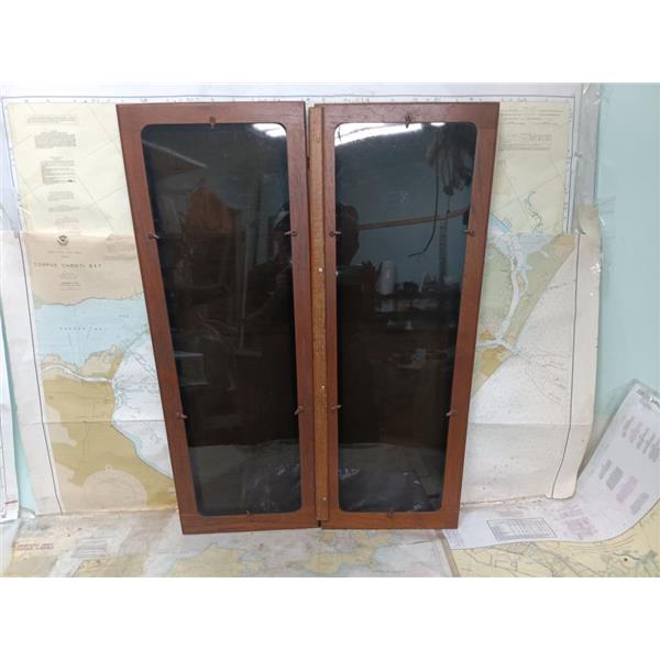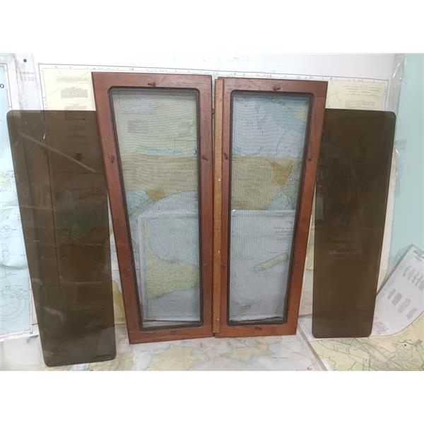 CALIBER 38 REMOVABLE COMPANIONWAY TEAK DOORS with REMOVABLE TINTED PLEXIGLAS INSERTS & SCREENS with 4 HINGES & 1 LATCH ASSEMBLY ATTACHED