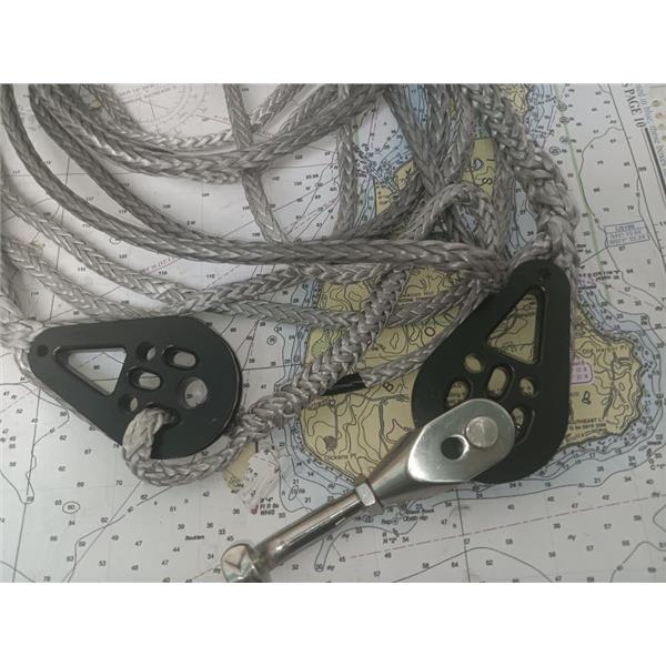 Boaters' Resale Shop of TX 2504 2274.22 COLLIGO 8'-6" DYNEMA SHROUD w T-FITTING * LINE TERMINATOR-MINI SERIES * SEE ALL 5 PHOTOS & DETAILS * SOLD AS PICTURED * ITEM WAS PREOWNED, IN ORIGINAL GREAT PHYSICAL CONDITION AND APPEARS TO HAVE NEVER BEEN USED OR DEPLOYED AND SEEMS TO BE WORKING BUT HAS NOT BEEN TESTED