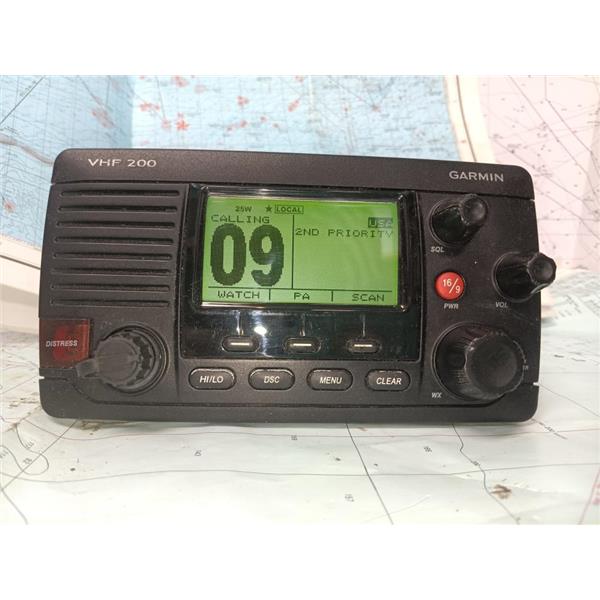 Boaters' Resale Shop of TX 2505 3107.01 GARMIN VHF 200 MARINE RADIO ONLY-NO MIC * MIC NOT INCLUDED(FOR TESTING ONLY) * SEE ALL 5 PHOTOS * SOLD AS PICTURED * ITEM WAS PREOWNED, USED, IN FAIRLY GOOD PHYSICAL CONDITION, POWERS UP, CONTROLS WORK, RECEIVES NOAA WEATHER AUDIO, RECEIVES AND TRANSMITS WHEN MIC IS KEYED BUT HAS NOT BEEN TESTED FURTHER
