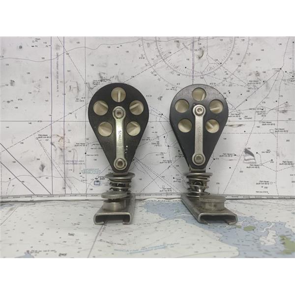 Schaefer 504-82 is a spring-loaded, genoa block slider car for boats up to approximately 27' in length overall, with a displacement of 5,000 pounds and a maximum of 315 sq. ft of sail area.