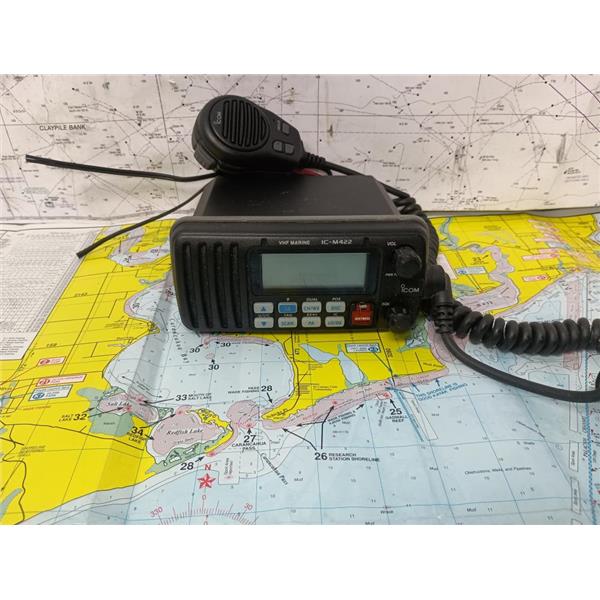 Boaters' Resale Shop of TX 2507 1201.25 ICOM IC-M422 MARINE VHF RADIO w MIC ONLY * SEE ALL 6 PHOTOS & ALL DETAILS * SOLD AS PICTURED * ANTENNA NOT INCLUDED * ITEM WAS PREOWNED, USED, IN FAIRLY GOOD PHYSICAL CONDITION, POWERS UP, CONTROLS WORK, RECEIVES NOAA WEATHER AUDIO, RECEIVES AND TRANSMITS WHEN MIC IS KEYED BUT HAS NOT BEEN TESTED FURTHER