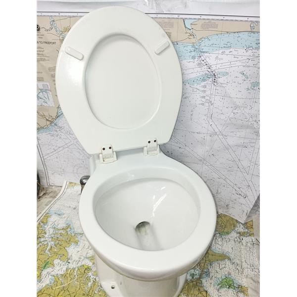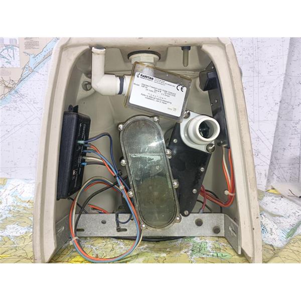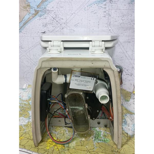 Boaters' Resale Shop of TX 2507 1901.05 RARITAN ELECTRIC 24V MARINE TOILET ABF24 * SEE ALL 8 PHOTOS & DETAILS * SOLD IN CONDITION PICTURED * SOME ASSEMBLY WILL BE REQUIRED (WIRING & HOSES)* ITEM WAS PREOWNED, USED, SHOWS TYPICAL SIGNS OF WEAR FROM USE AND WEATHER (MINOR STAINS) BUT IS IN FAIRLY GOOD NAUTICAL PHYSICAL CONDITION AND MOTOR POWERS UP & PUMP HAS SUCTION WHEN DC VOLTAGE IS APPLIED AND APPEARS TO BE OPERATING PROPERLY BUT HAS NOT BEEN TESTED FURTHER