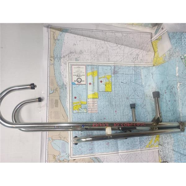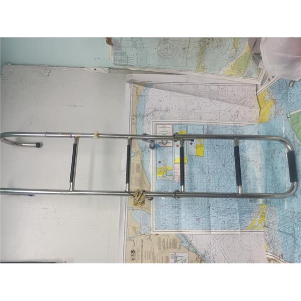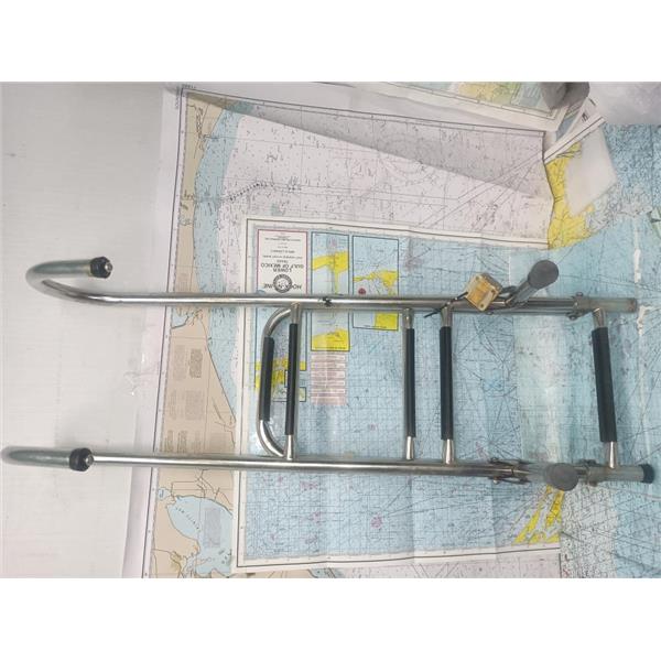 Boaters' Resale Shop of TX 2507 1903.01 WINDLINE/WEST MARINE 5 STEP FOLDING BOARDING TRANSOM LADDER with A PAIR OF KEYHOLE MOUNTING BRACKETS * SEE ALL 6 PHOTOS & DETAILS * SOLD IN CONDITION PICTURED * SOME ASSEMBLY MAY BE REQUIRED WHEN SHIPPED * ITEM WAS PREOWNED, USED, IS IN FAIRLY GOOD PHYSICAL CONDITION AND APPEARS TO BE OPERATING PROPERLY BUT HAS NOT BEEN TESTED FURTHER