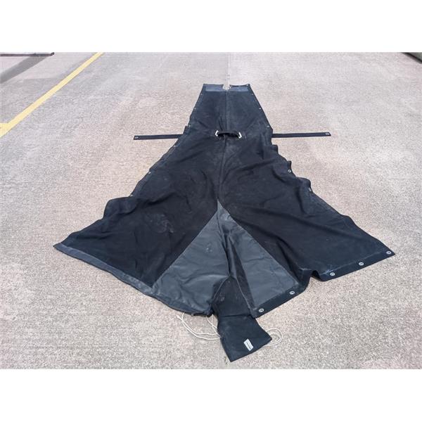 Boaters' Resale Shop of TX 2507 1903.17 SAIL COVER 3' x 10'6" w HALYARD STRAP * SEE ALL 5 PHOTOS & ALL DETAILS * SOLD AS PICTURED * ITEM WAS PREOWNED, USED, IS IN FAIR PHYSICAL CONDITION, ALL 15 CLASPS ARE WORKING BUT HAVE SOME CORROSION AND COULD USE A WASH BUT APPEARS TO BE OPERATING PROPERLY BUT HAS NOT BEEN TESTED FURTHER