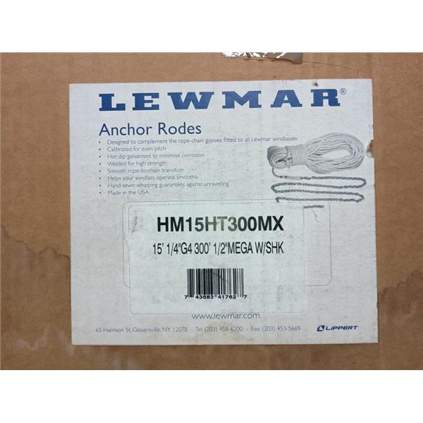 Boaters' Resale Shop of TX 2507 1909.04 LEWMAR HM15HT300MX PRE-MADE ANCHOR RODES * Lewmar 15' of 1/4" G4 Chain & 300' of 1/2" 8 Plait Line * SEE ALL 6 PHOTOS * SOLD AS PICTURED * ITEM WAS PREOWNED, IN ORIGINAL BOX & PACKING, IN GREAT PHYSICAL CONDITION AND APPEARS TO HAVE NEVER BEEN INSTALLED OR DEPLOYED AND HAS NOT BEEN TESTED