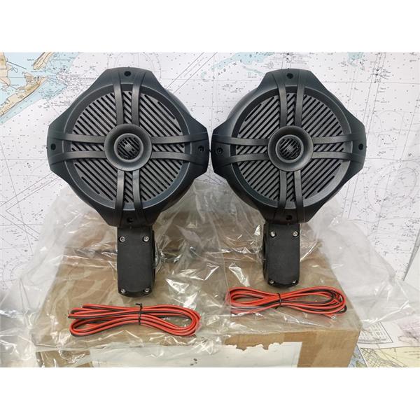Boaters' Resale Shop of TX 2508 0201.01 TWO BLACK WAKEBOARD TOWER 6" SPEAKERS IN ORIGINAL BOX & UNUSED * PAIR OF WAKE BOARD TOWER 6" SPEAKERS with MOUNTS & WIRES * SEE ALL 5 PHOTOS * SOLD AS PICTURED * ITEM WAS PREOWNED, IN ORIGINAL BOX & PACKING, IN GREAT PHYSICAL CONDITION AND APPEARS TO HAVE NEVER BEEN INSTALLED OR DEPLOYED AND HAS NOT BEEN TESTED