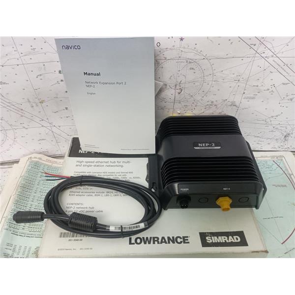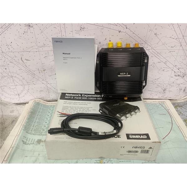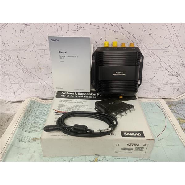 Boaters' Resale Shop of TX 2508 0201.05 NAVICO NETWORK EXPANSION PORT-2 (NEP-2) * PN: 000-10029-001 * NEP-2 is compatible with Lowrance HDS, Simrad NSS, and Simrad NSO. SEE ALL 6 PHOTOS * SOLD AS PICTURED * ITEM WAS PREOWNED, IN ORIGINAL BOX & PACKING, IN GREAT PHYSICAL CONDITION AND APPEARS TO HAVE NEVER BEEN INSTALLED OR DEPLOYED AND HAS NOT BEEN TESTED