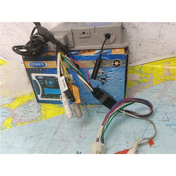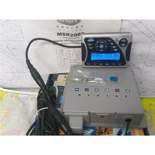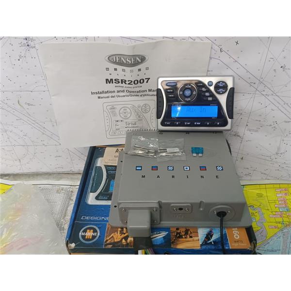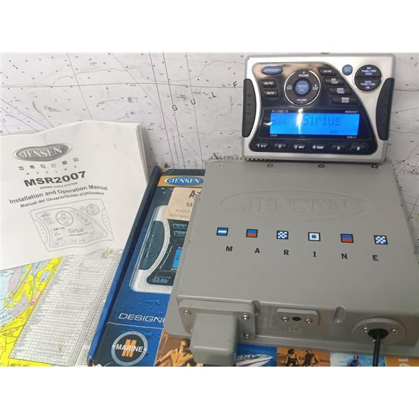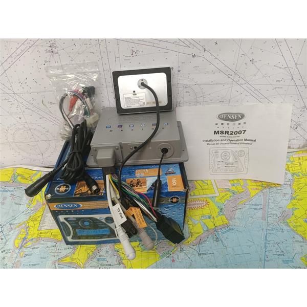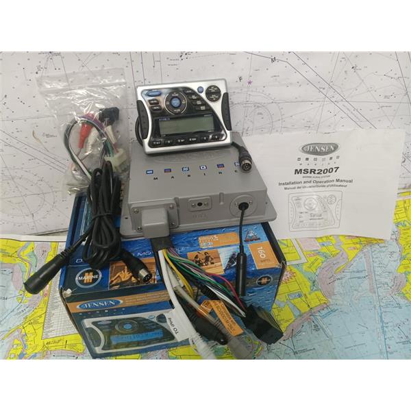Boaters' Resale Shop of TX 2508 0201.28 JENSEN MSR2007 MODULAR MARINE STEREO RECEIVER * CD PLAYER, SPEAKERS & ANTENNA NOT INCLUDED * THIS MODULAR MARINE STEREO SYSTEM CONSIST OF A WATERPROOF BOX THAT HOUSES THE AMPLIFIER,(AM/FM RADIO, ETC.) & A SEPARATE WATERPROOF REMOTE CONTROL THAT CAN BE SURFACE MOUNTED * SEE ALL 8 PHOTOS * SOLD AS PICTURED * ITEM WAS PREOWNED, LIGHTLY USED, IN ORIGINAL BOX & PACKING, IN GREAT PHYSICAL CONDITION AND APPEARS TO BE OPERATING PROPERLY, POWERS UP, CONTROLS WORK, RECEIVES AM/FM RECEPTION AND HAS AUDIO OUTPUT (SPEAKERS NOT INCLUDED) BUT HAS NOT BEEN TESTED FURTHER