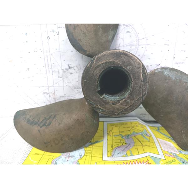 Boaters' Resale Shop of TX 2508 0207.01 VARIFOLD 3 BLADE 18RH12 FOLDING PROP FOR 1.25" SHAFT * VARIFOLD BRONZE 3 BLADE 18" DIAMETER FOLDING PROP with RIGHT HAND ROTATION & 12" PITCH FOR A 1.25" SHAFT * SEE ALL 6 PHOTOS & DETAILS * SOLD IN CONDITION PICTURED * SOME ASSEMBLY MAY BE REQUIRED WHEN SHIPPING * ITEM WAS PREOWNED, USED, IS IN FAIR PHYSICAL CONDITION AND MECHANISM APPEARS TO BE OPERATING PROPERLY BUT HAS NOT BEEN TESTED FURTHER