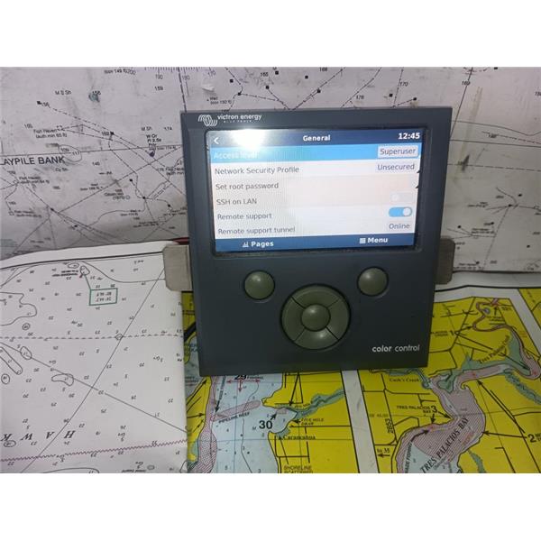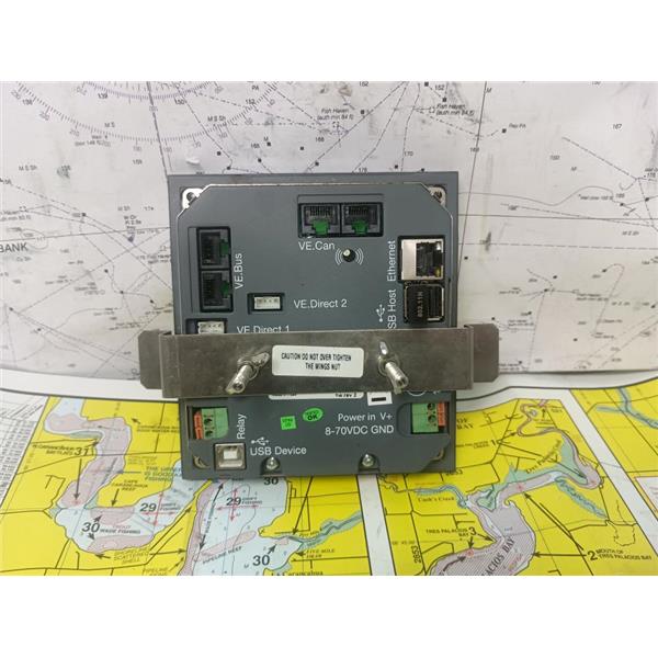 Boaters' Resale Shop of TX 2508 0902.04 VICTRON COLOR CONTROL GX CONTROLLER ONLY PN: BPP010300100R with FLUSH MOUNT BRACKET & WING NUTS ONLY * SEE ALL 6 PHOTOS & DETAILS * SOLD IN CONDITION PICTURED * ITEM WAS PREOWNED, USED, IS IN FAIRLY GOOD PHYSICAL CONDITION AND APPEARS TO BE OPERATING PROPERLY POWERS UP, DISPLAY LOOKS GOOD AND CONTROLS WORK BUT HAS NOT BEEN TESTED FURTHER
