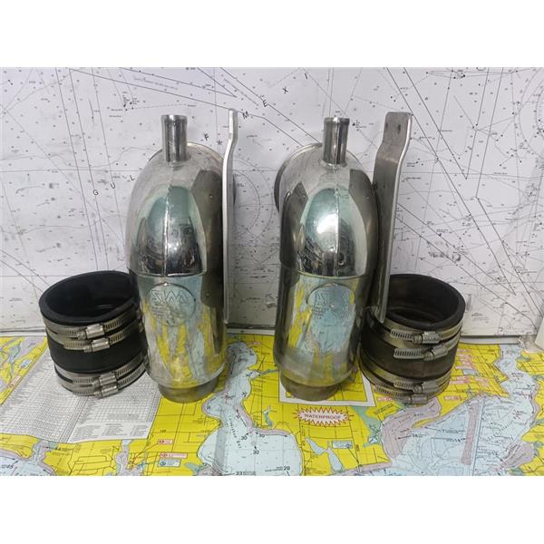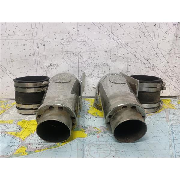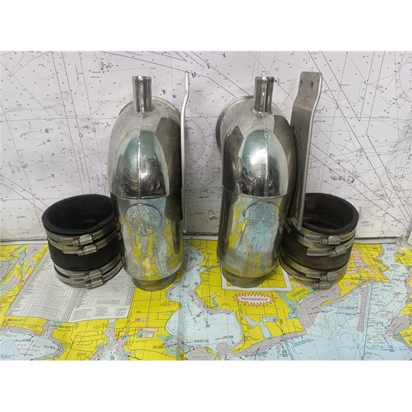 Boaters' Resale Shop of TX 2508 1606.01 STAINLESS MARINE PAIR OF 3.5" SS RISERS w BRACKETS * PAIR OF STAINLESS STEEL RISERS with BRACKETS, 2 HOSES & 8 HOSE CLAMPS FROM STAINLESS MARINE MIAMI FLA. * SEE ALL 8 PHOTOS & DETAILS * SOLD IN CONDITION PICTURED * SOME ASSEMBLY MAY BE REQUIRED WHEN SHIPPED * ITEM WAS PREOWNED, USED, IS IN FAIRLY GOOD PHYSICAL CONDITION AND APPEARS TO BE OPERATING PROPERLY BUT HAS NOT BEEN TESTED FURTHER