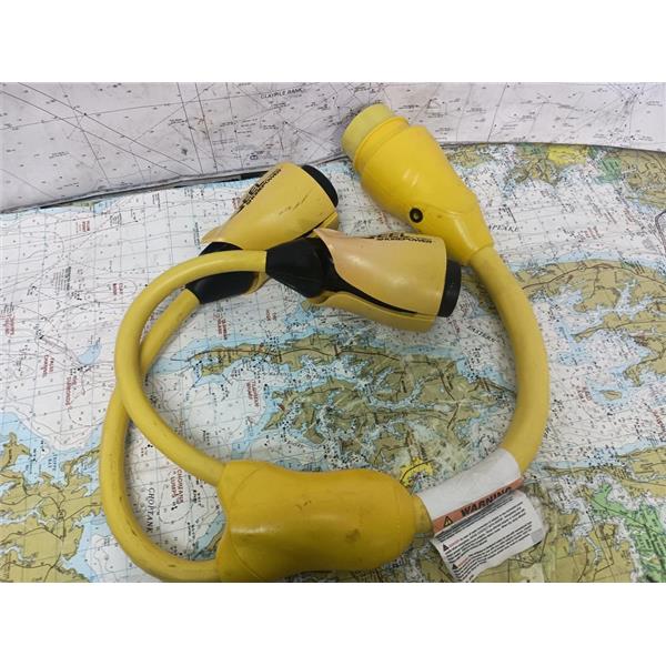 Boaters' Resale Shop of TX 2509 5541.05 MARINCO EEL Y ADAPTER MODEL Y503-2-30(50 Amp 125V Male to 30 Amp 125V Females) * SEE ALL 6 PHOTOS & DETAILS * SOLD IN CONDITION PICTURED * ITEM WAS PREOWNED, LIGHTLY USED(IF AT ALL), IS IN ORIGINAL PHYSICAL CONDITION AND PASSES CONTINUITY TEST & APPEARS TO BE OPERATING PROPERLY BUT HAS NOT BEEN TESTED FURTHER