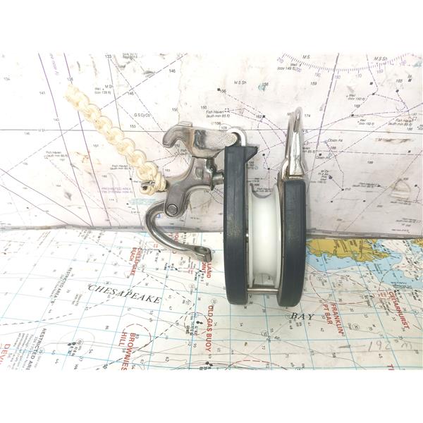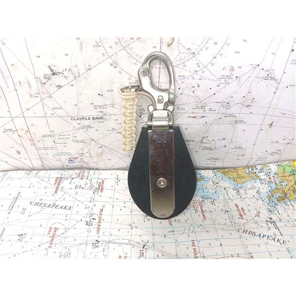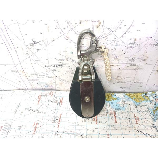 Spare or replacement block for general use on larger boats depending on line angle and load