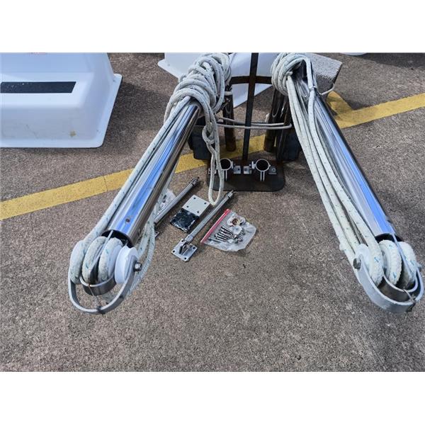 Boaters' Resale Shop of TX 2511 0802.01 KINGSTON DINGHY DAVITS SYSTEM D-352 * SEE ALL 6 PHOTOS & DETAILS * SOLD IN CONDITION PICTURED * MOUNTING HARDWARE, LINE, BLOCK PULLEYS & STRUTS INCLUDED * ITEM WAS PREOWNED, USED, SHOWS TYPICAL SIGNS OF WEAR FROM USE AND WEATHER (MINOR STAINS & CORROSION) BUT IS IN FAIRLY GOOD NAUTICAL PHYSICAL CONDITION AND APPEARS TO BE OPERATING PROPERLY BUT HAS NOT BEEN TESTED FURTHER