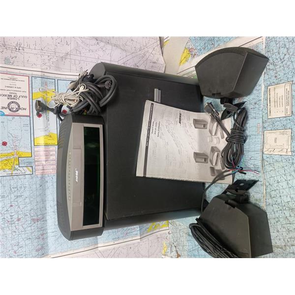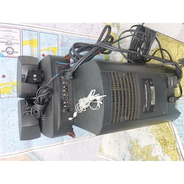 Boaters' Resale Shop of TX 2511 0802.05 BOSE 3*2*1 HOME ENTERTAINMENT SYSTEM * BOSE 3-2-1 SPEAKER CABLE HAS BEEN CUT & IS MISSING THE LEFT SPEAKER FOUR PIN END PLUG)SEE PHOTOS * RIGHT SPEAKER PLUG HAS ALSO BEEN CUT BUT THE PLUG WAS INCLUDED AND HAS BEEN RE-ATTACHED *SEE ALL 8 PHOTOS & DETAILS * SOLD IN CONDITION PICTURED * ITEM WAS PREOWNED, USED, BOSE SPEAKER CABLE(CUT & IS MISSING THE FOUR PIN LEFT SPEAKER END PLUG) BUT IS IN FAIRLY GOOD NAUTICAL PHYSICAL CONDITION AND APPEARS TO BE OPERATING PROPERLY, MEDIA CENTER POWERS UP, CONTROLS WORK, RECEIVES AM & FM RADIO STATIONS, PLAYS CDs & DVDs & POWERED SPEAKERS ALL TESTED & SOUND GOOD BUT HAS NOT BEEN TESTED FURTHER