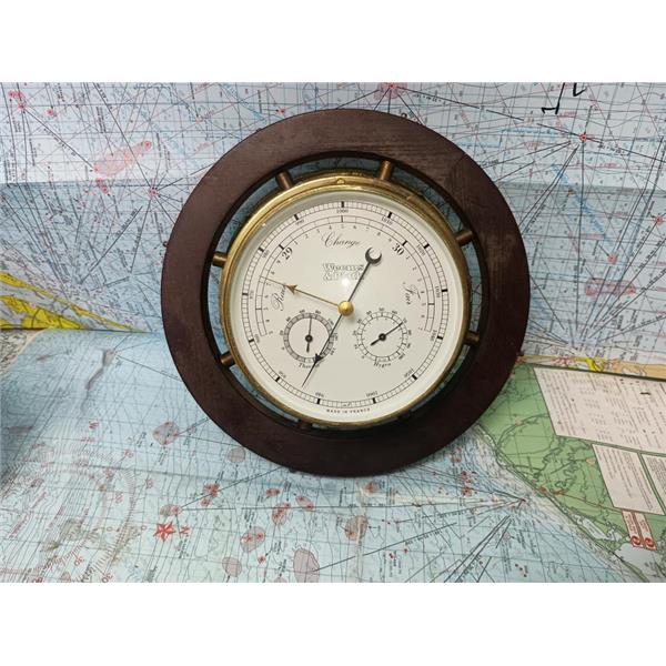 Boaters' Resale Shop of TX 2511 0805.11 WEEMS & PLATH BAROMETER w MARINE DECOR * BAROMETER HAS BEEN ATTACHED TO THE NAUTICAL DECOR with CLEAR TAPE * SEE ALL 5 PHOTOS & DETAILS * SOLD IN CONDITION PICTURED * ITEM WAS PREOWNED, USED, SHOWS TYPICAL SIGNS OF WEAR FROM USE AND WEATHER (MINOR STAINS & CORROSION) BUT IS IN FAIR NAUTICAL PHYSICAL CONDITION AND APPEARS TO BE OPERATING PROPERLY BUT HAS NOT BEEN TESTED FURTHER