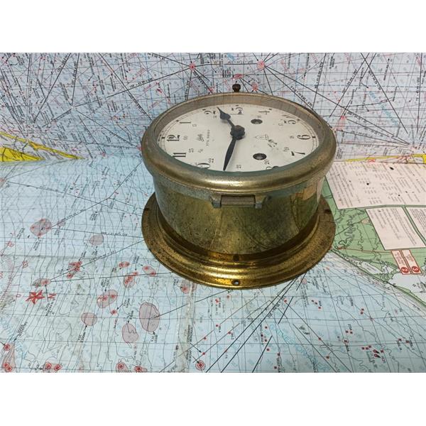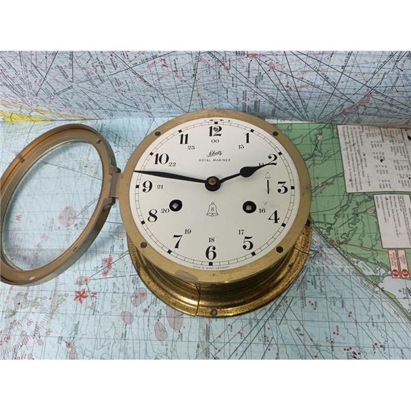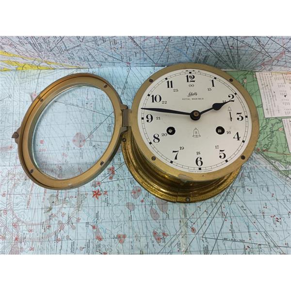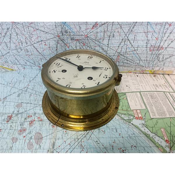 VINTAGE GERMAN SCHATZ ROYAL MARINER SHIPS BRASS BELL CLOCK-NO KEY- GOOD WORKING CONDITION