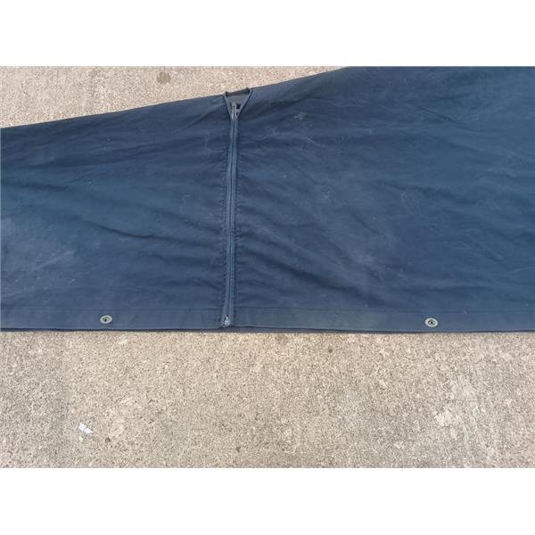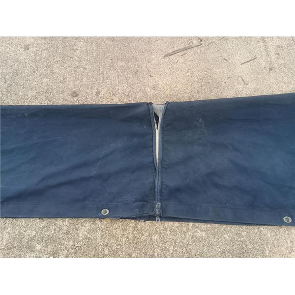 Boaters' Resale Shop of TX 2511 1505.01 NAVY BLUE 4'6" x 15' MAINSAIL COVER * NEEDS A WASH, IS MISSING 2 OF THE 11 CLASPS, BOTH ZIPPERS ARE CORRODED & DAMAGED AND SHOULD BE REPLACED ALSO HAS SOME FRAYED EDGES & SMALL HOLES * SEE ALL 10 PHOTOS & DETAILS * SOLD IN CONDITION PICTURED * ITEM WAS PREOWNED, USED, IS IN FAIRLY ROUGH PHYSICAL CONDITION BUT APPEARS TO BE REPAIRABLE