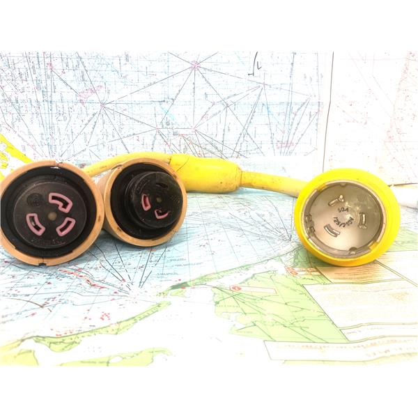 Boaters' Resale Shop of TX 2511 2202.01 MARINCO EEL 50AMP 125/250V Y-ADAPTER Y504-2-504 * Marinco EEL (2)50A-125/250V Female to (1)50A-125/250V Male "Y" Adapter - Yellow Y504-2-504 * SEE ALL 6 PHOTOS & DETAILS * SOLD IN CONDITION PICTURED * SEALING COLLARS ARE NOT INCLUDED * ITEM WAS PREOWNED, USED, IS MISSING THE SEALING COLLARS BUT IS IN FAIR PHYSICAL CONDITION AND PASSES CONTINUITY TEST & APPEARS TO BE OPERATING PROPERLY BUT HAS NOT BEEN TESTED FURTHER