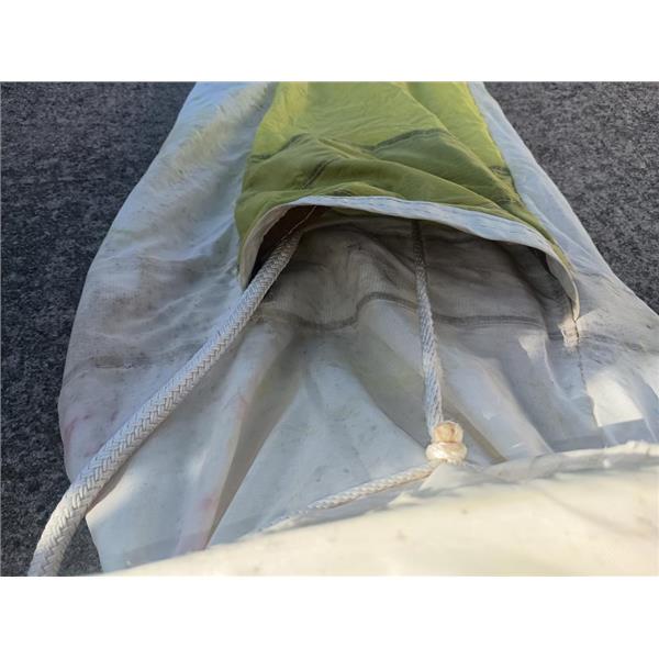 Design: The device is essentially a tapered sleeve, usually made of light, breathable mesh or nylon fabric, with a fiberglass or stainless steel hoop at the mouth to guide the sail in and out.