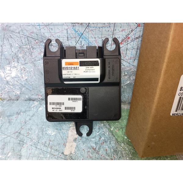The Mercury Marine 8M0101651 is an OEM Command Module, specifically the Version 80, used in Mercury Marine outboard systems, acting as a central control box (DTS system) for throttle, shifting, and SmartCraft gauge integration, often found with a 24-pin connector and used with modern outboards like Verados.