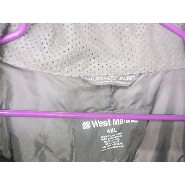 Boaters' Resale Shop of TX Boaters' Resale Shop of TX 2601 0307.02 THIRD REEF 4XL FOUL WEATHER SUIT RN#105411(JACKET & BIBS) by WEST MARINE * SEE ALL 6 PHOTOS & DETAILS * ITEM WAS PREOWNED, LIGHTLY USED, JACKET IS IN FAIRLY GOOD PHYSICAL CONDITION AND PANTS APPEAR TO BE LIKE NEW AND MAYBE NEVER USED BUT ALL THE ZIPPERS APPEAR TO BE OPERATING PROPERLY BUT HAS NOT BEEN TESTED FURTHER