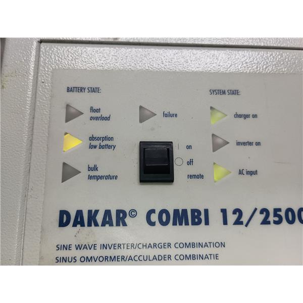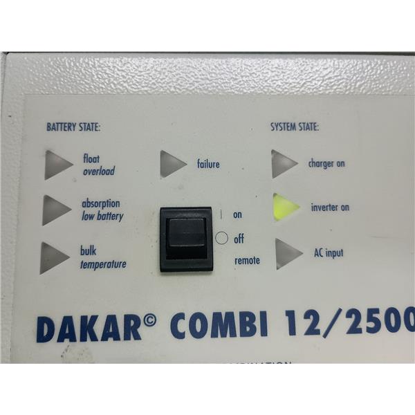 Boaters' Resale Shop of TX 2601 1707.01 MASTERVOLT INVERTER/CHARGER PN: 03101200 * TYPE: DAKAR COMBI 12/2500-100 * REMOTE NOT INCLUDED * SEE ALL 8 PHOTOS & DETAILS * SOLD IN CONDITION PICTURED * SOME ASSEMBLY MAY BE REQUIRED WHEN SHIPPING * ITEM WAS PREOWNED, USED, IS IN FAIR PHYSICAL CONDITION AND APPEARS TO BE OPERATING PROPERLY. UNIT POWERS UP, INVERTS DC VOLTAGE TO AC VOLTAGE, TRANSFERS AC VOLTAGE OUTPUT AND CHARGES BATTERIES WHEN 110 VOLTS ARE APPLIED BUT HAS NOT BEEN TESTED FURTHER