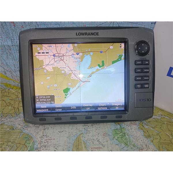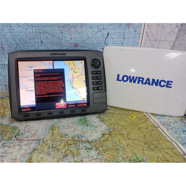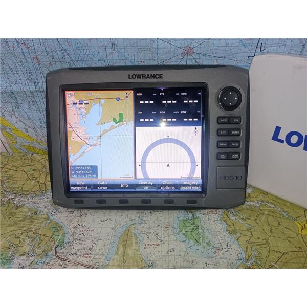 Boaters' Resale Shop of TX 2602 2801.01 LOWRANCE HDS-10 GPS & SONAR DISPLAY with POWER/DATA CABLE & SUN COVER ONLY * SEE ALL 8 PHOTOS & DETAILS * SOLD IN CONDITION PICTURED * GPS ANTENNA, CHART CARDS & TRANSDUCER NOT INCLUDED * ITEM WAS PREOWNED, USED, IS IN FAIRLY GOOD PHYSICAL CONDITION AND APPEARS TO BE OPERATING PROPERLY, POWERS UP, CONTROLS WORK AND DISPLAYS CHART CARD DATA BUT HAS NOT BEEN TESTED FURTHER