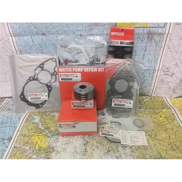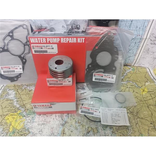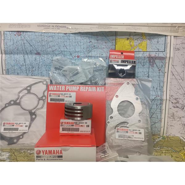 Kit Includes: 1 Cartridge Insert 61A-44322-02-00, 1 Outer Plate Cartridge 68V-44323-00-00, 1 Water Pump Gasket 6E5-44315-A0-00, 1 Impeller 6E5-44352-01-00, 4 Bolt with Washer 90119-08M14-00, 1 Woodruff Key 90280-04M05-00, 1 O-Ring 93210-37M67-00, 1 O-Ring 93210-86M38-00, 1 Dowel Pin 93606-12019-00