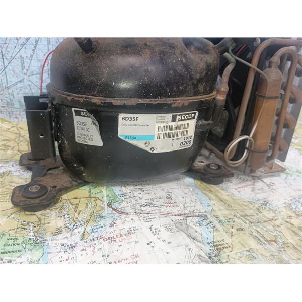 Boaters' Resale Shop of TX 2602 2804.05 SECOP BD35F COMPRESSOR/EVAPORATOR UNIT * POWER UNIT NOT INCLUDED(SOLD SEPARATELY)* SEE ALL 6 PHOTOS & DETAILS * SOLD IN CONDITION PICTURED * SOME ASSEMBLY WILL BE REQUIRED WHEN SHIPPED * ITEM WAS PREOWNED, USED, SHOWS TYPICAL SIGNS OF WEAR FROM USE AND WEATHER (STAINS, RUST & CORROSION) BUT IS IN FAIR NAUTICAL PHYSICAL CONDITION, COMPRESSOR & FAN POWER UP WHEN DC VOLTAGE IS APPLIED BUT HAS NOT BEEN TESTED FURTHER