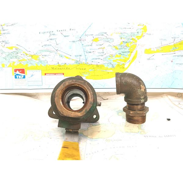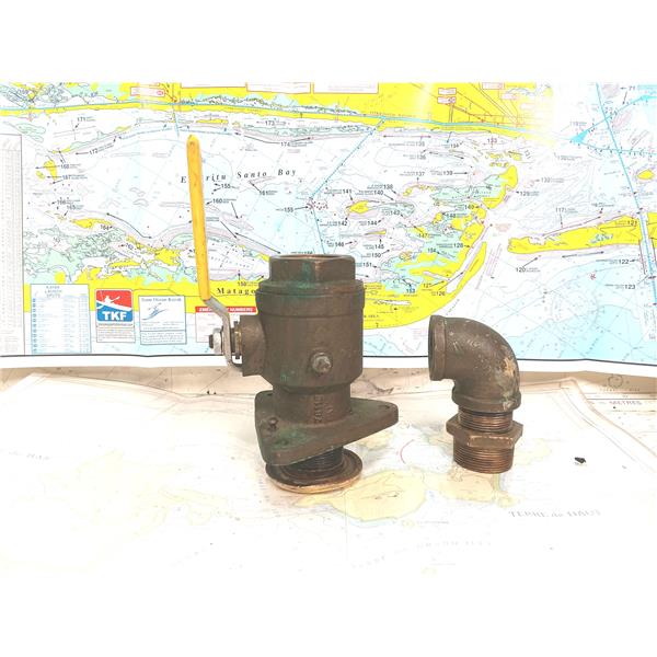 UNBRANDED BRONZE 1-1/2" SEACOCK VALVE with HANDLE & 90% ELBOW