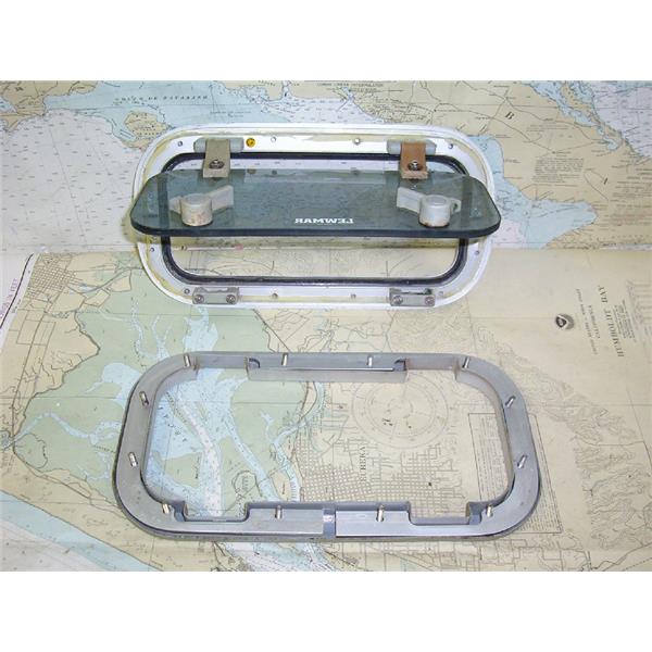 Boaters’ Resale Shop of TX 1605 2727.04 LEWMAR TINTED OPENING PORT WITH TRIM * APPROX. CUT-OUT DIMENSIONS: 6-3/4" x 12-1/2" * APPROX. OVERALL DIMENSIONS: 1-3/4" T x 7-3/4" H x 14-5/8" W *