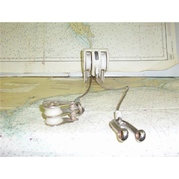 Boaters’ Resale Shop of TX 1411 2421.42 BOOM END WITH SHEAVES * APPROX. DIMENSIONS: 2-1/2" WIDE * APPROX. OVERALL HEIGHT: 4-1/2" * APPROX. OVERALL LENGTH" 6" * ITEM WAS PRE-OWNED, USED, WEATHERED AND HAS NOT BEEN TESTED