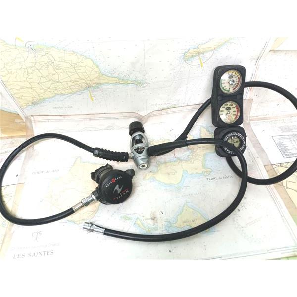 Boaters' Resale Shop of TX 2502 2724.12 AQUA-LUNG TITAN SCUBA REGULATOR & GAUGES