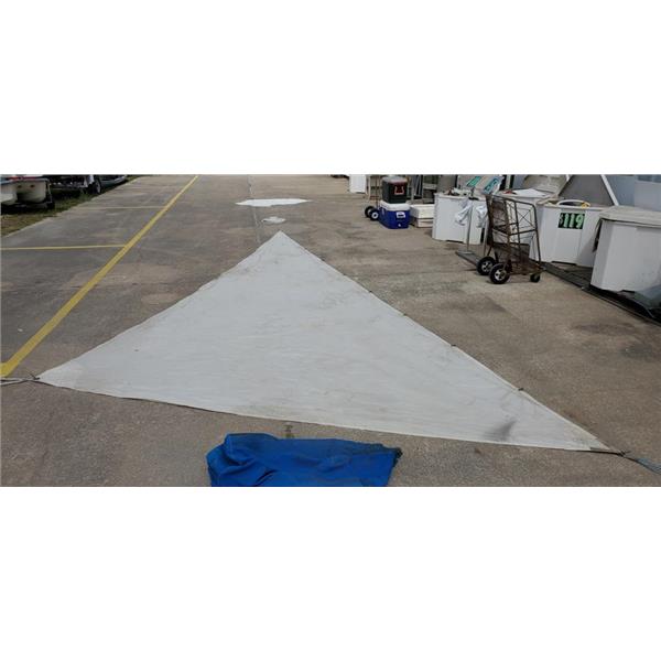 | Condition Description | Stained * Generally clean, cloth getting softer, may have minor repairs/stains * Bay or Lake Day Sailing Sail * Wire Luff with #0 Hanks * Blue Deck Bag Included |
