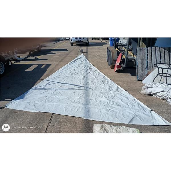 Minor Stains * Leech Needs Restitching * Generally clean, cloth getting softer, may have minor repairs/stains * Bay or Lake Day Sailing Sail * Rope Luff with #1 Hanks * Sunbrella: No * White Sail Bag Included