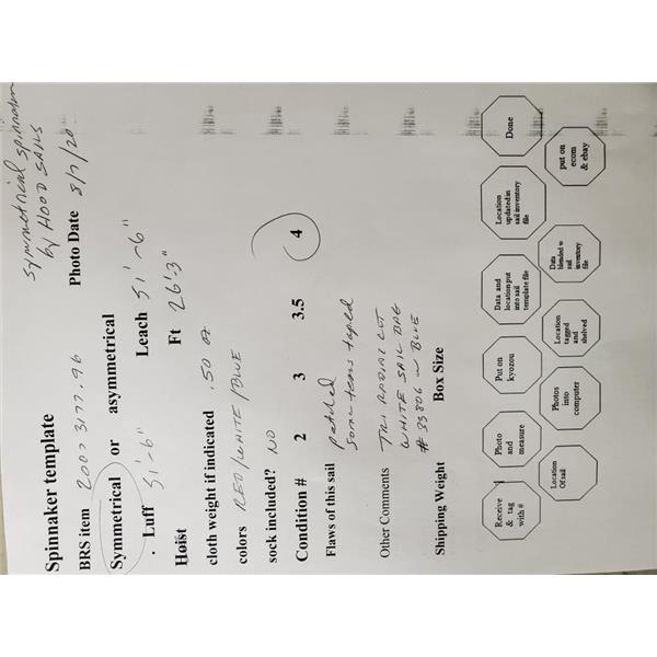 cloth weight: .5 oz * total weight of sail: 18 lbs * L code: D-1 * Photo date: 8/7/20