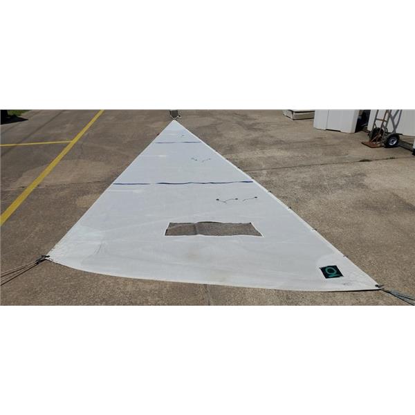Minor Stains * Tape Luff with #0 Hanks * Generally clean and cloth has life in it, no significant damage or chafe * Generally clean, cloth getting softer, may have minor repairs/stains * Coastal Cruising or Club Racing Sail * Bay or Lake Day Sailing Sail * 2 Blue Draft Stripes * Gray Sail Bag * Tell-Tale Window