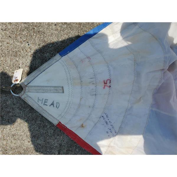 Patched * Some Tears Taped * Minor Stains* Tri-Radial Cut * #US33806 * White Sail Bag* Generally clean, cloth getting softer, may have minor repairs/stains * Bay or Lake Day Sailing Sail