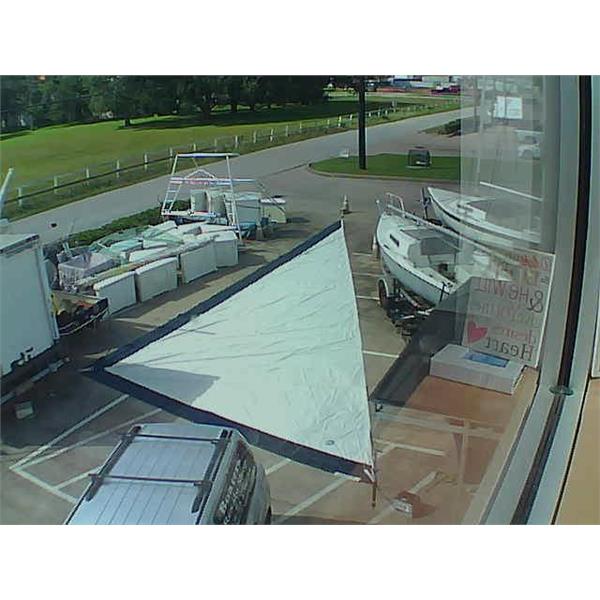 Suncover Needs Restitching * #6 Luff Tape * Navy Suncover on Starboard Side * Stained * Generally clean and cloth has life in it, no significant damage or chafe * Generally clean, cloth getting softer, may have minor repairs/stains * Coastal Cruising or Club Racing Sail * Bay or Lake Day Sailing Sail